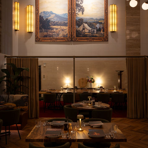 The Heart of Fire: We positioned the open-fire kitchen and rotisserie as the theatrical "main stage." The challenge was balancing proximity for theatre while managing technical requirements—ensuring guests are close enough to feel the glow of the coal and flame, but far enough that the experience remains polished and comfortable.